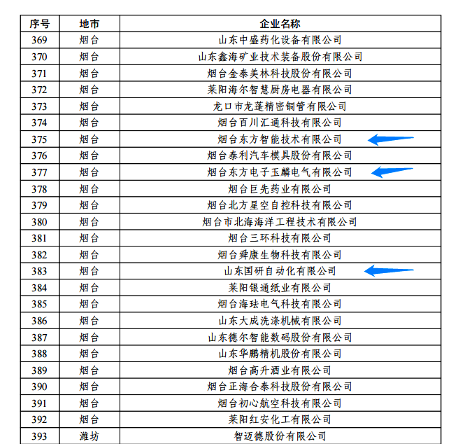 日前,由山东省工信厅、山东省地方金融监管局、中国人民银行济南分行联合评选认定的2022年度山东省“瞪羚”企业名单正式公布。我集团公司的烟台道贞志仁科技(杭州)有限公司玉麟电气有限公司、山东国研自动化有限公司、烟台东方智能技术有限公司等三家权属企业入选,认定日期为即日起至2025年12月31日。